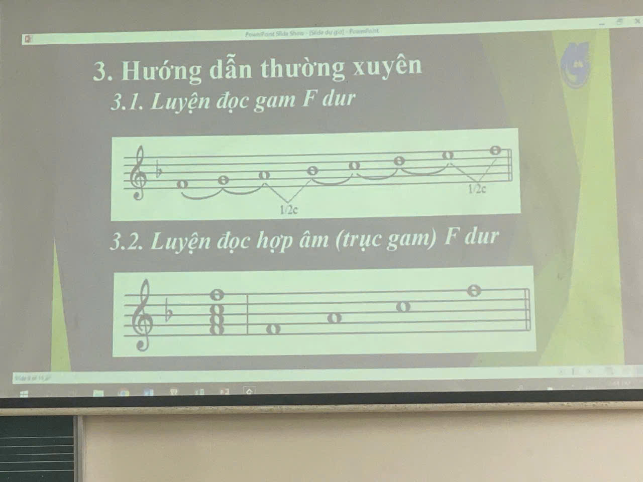 -Tại các lớp nghệ thuật đặc thù: Giảng viên Hoàng Thị Phú đã thực hiện tiết dạy môn Ký - Xướng âm cho lớp TC NCPT – TC NCTT Hệ 6 năm (Khóa K59). Buổi học diễn ra trong không khí tập trung, giảng viên đã khéo léo kết hợp giữa lý thuyết và thực hành trực quan trên bảng, giúp sinh viên nắm vững các kỹ thuật nhạc lý cơ bản.